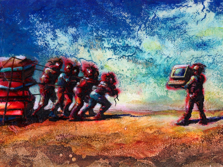 Old illustrations most of which from the mid-1990's. Used to do 1 - 3 very small mutimedia paintings / day. Hope to get back to that again soon!